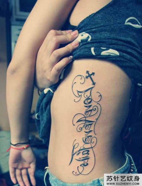 创意设计感花体英文腰部纹身_英文纹身图案大全_纹身图吧