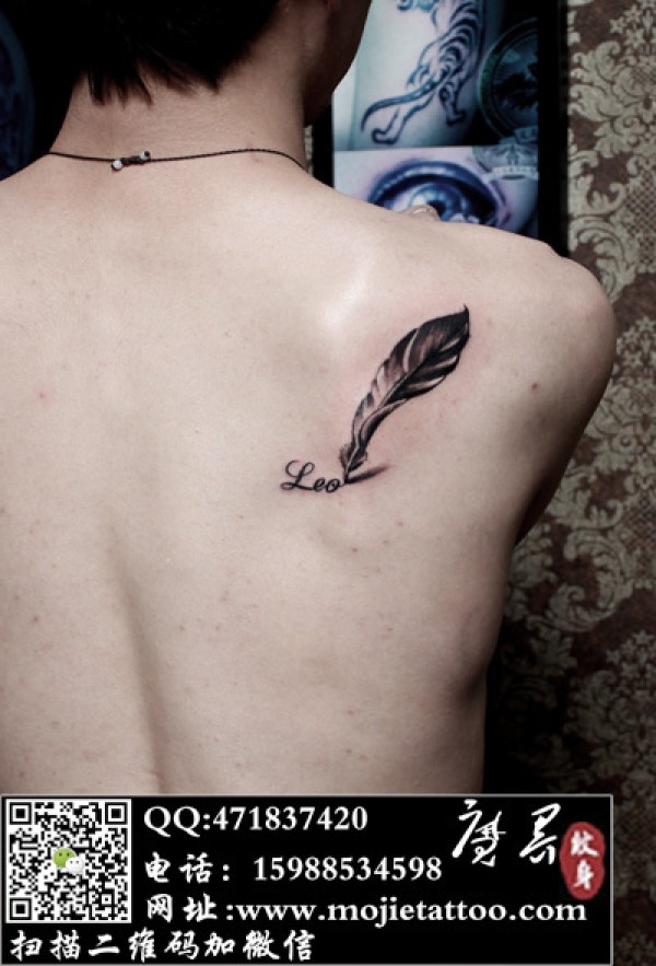 后背羽毛签名英文励志纹身_英文纹身图案大全_纹身图吧