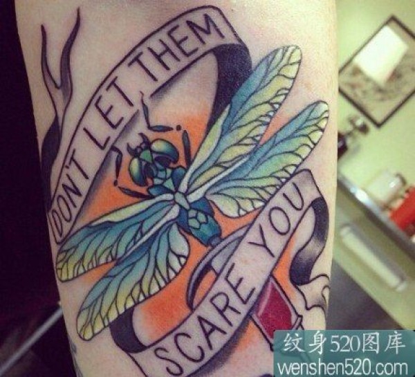 手臂彩色蜻蜓字母纹身_字母纹身图案大全_纹身图吧