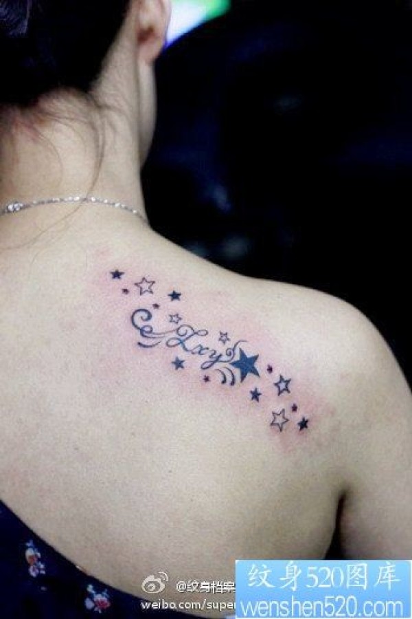 小清新肩部字母五角星纹身图案_字母纹身图案大全_纹身图吧