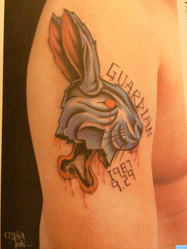 一幅彩色兔子字母纹身图片由纹身520图库推荐_字母纹身图案大全_纹身图吧
