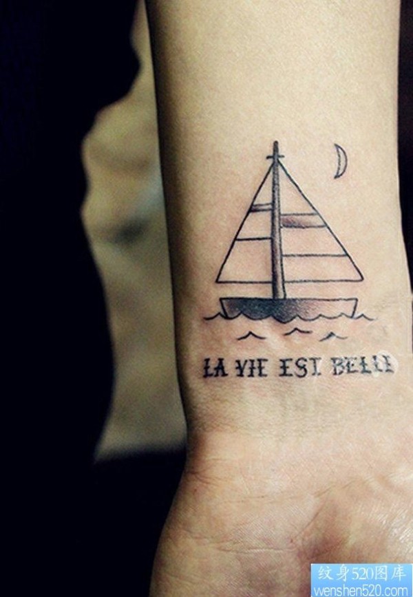手腕船字母纹身图片由纹身520图库推荐_字母纹身图案大全_纹身图吧