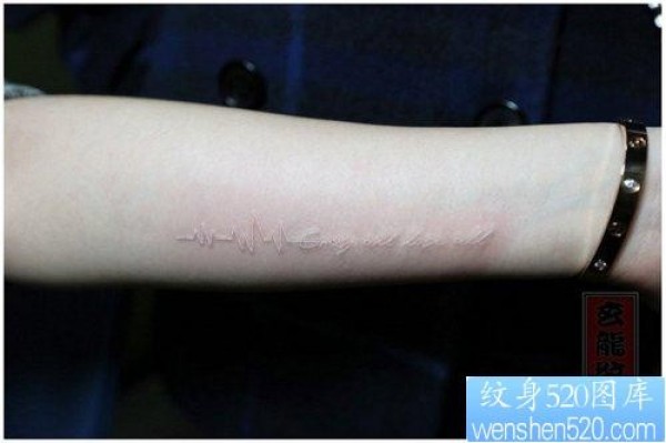 女人手臂流行时尚的白色心电图与字母纹身图片_字母纹身图案大全_纹身图吧