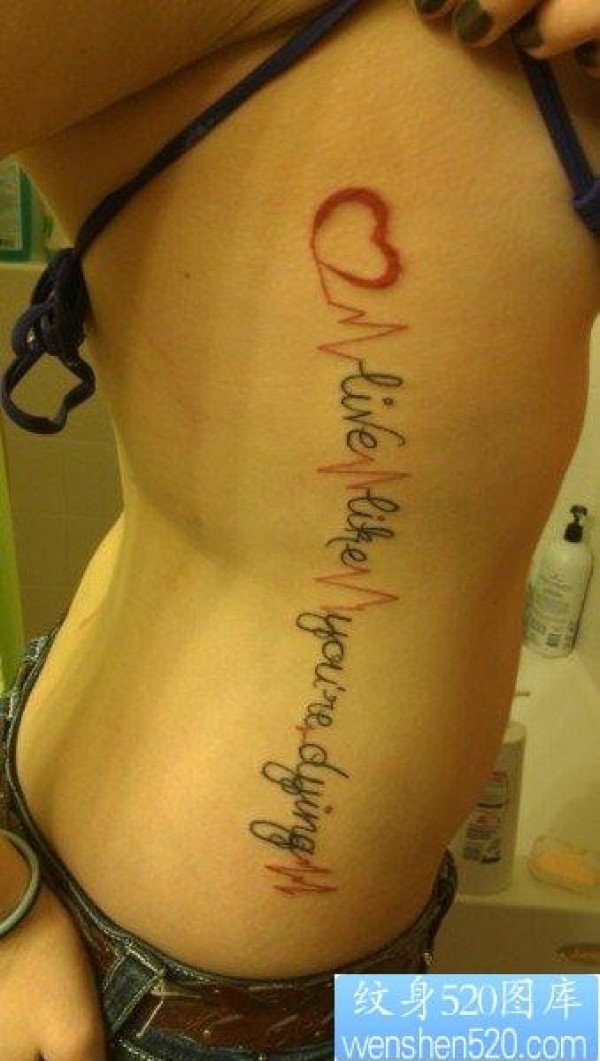 女孩子侧腰字母与心电图纹身图片_字母纹身图案大全_纹身图吧