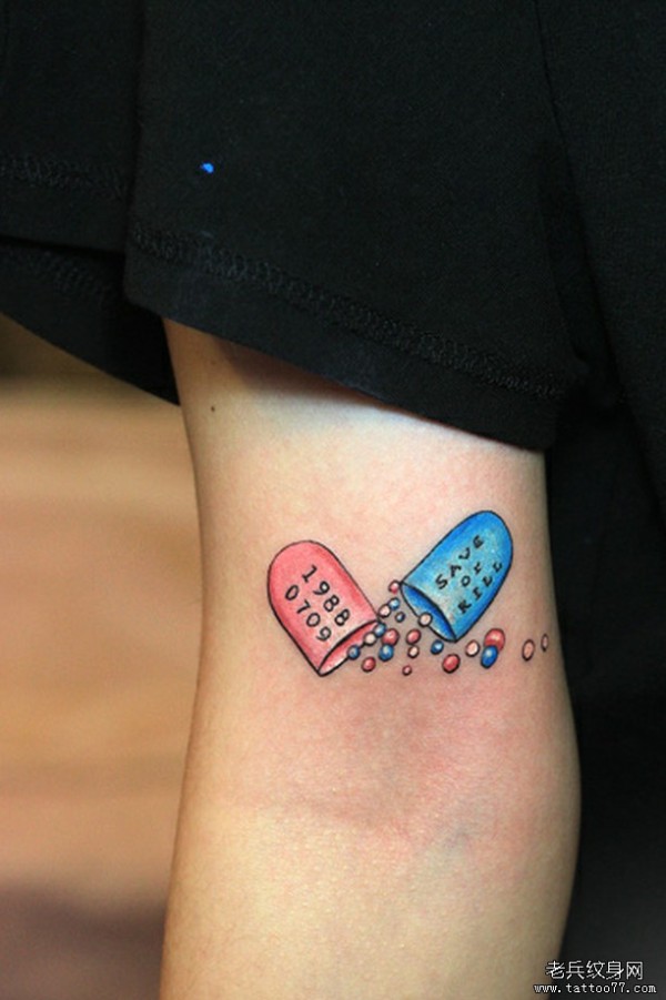 纹身520图库推荐一幅手臂药丸数字字母文身图片_字母纹身图案大全_纹身图吧