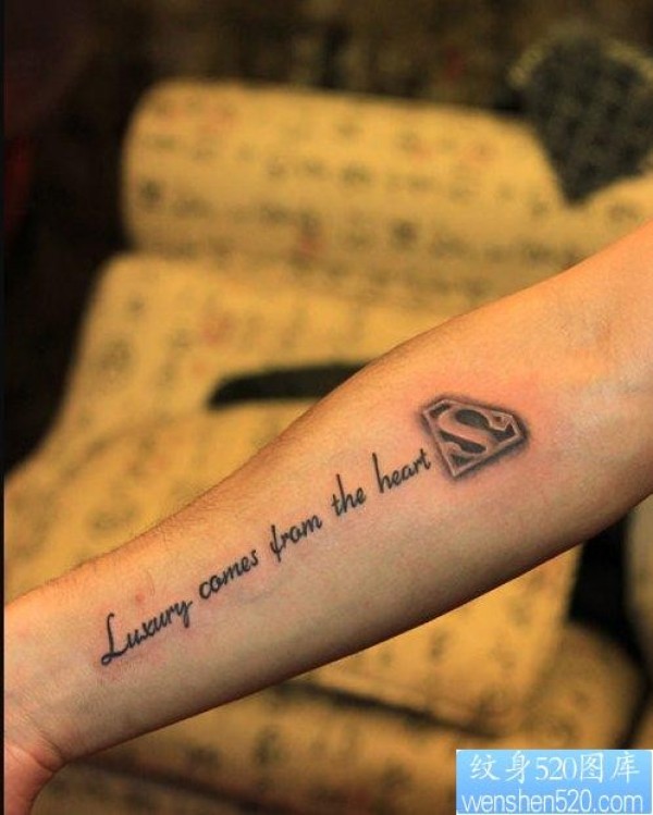 手臂超人标志字母纹身图片由纹身520图库推荐_字母纹身图案大全_纹身图吧