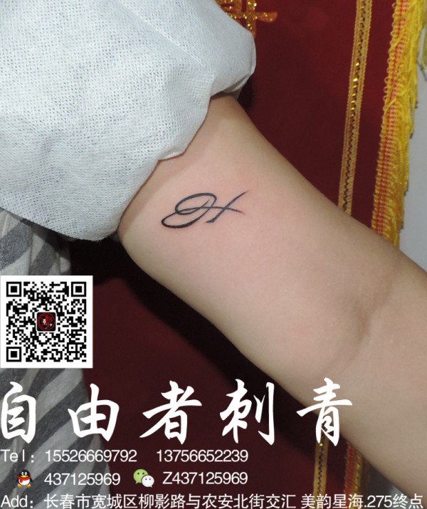 臂弯上方的英文字母纹身图案单个字母H纹身_字母纹身图案大全_纹身图吧