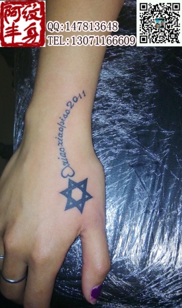 手背上简单的字母加五角星纹身图案排列的英文_字母纹身图案大全_纹身图吧