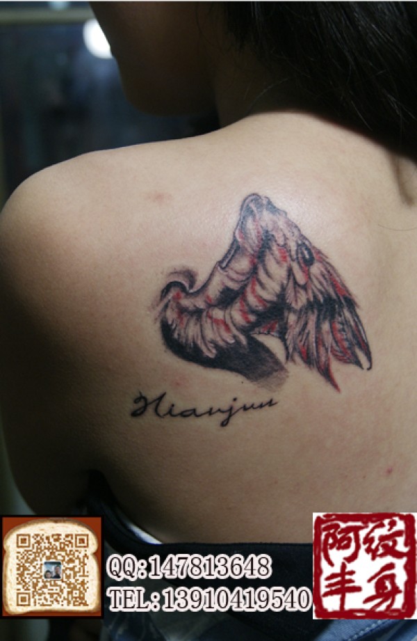 女生后背彩色小翅膀纹身图案彩色翅膀加字母纹_字母纹身图案大全_纹身图吧