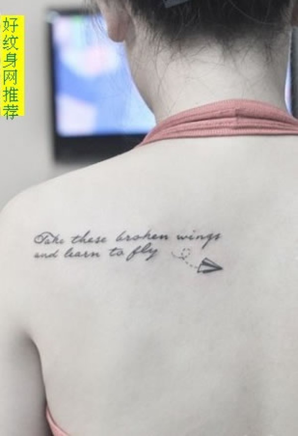 侧背字母纹身加纸飞机图案凌度纹身推荐的女生_字母纹身图案大全_纹身图吧