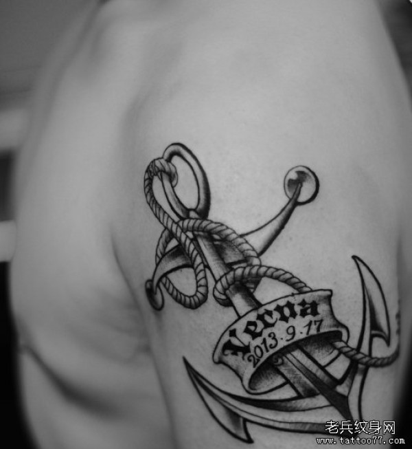 一款手臂船锚字母纹身图案_字母纹身图案大全_纹身图吧