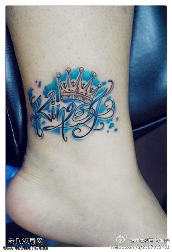 脚踝彩色皇冠字母纹身图案_字母纹身图案大全_纹身图吧