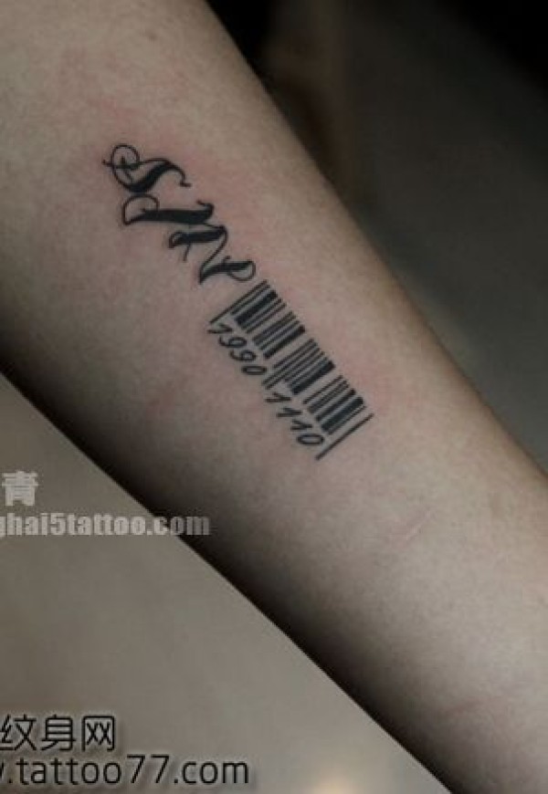 手臂条形码字母纹身图案_字母纹身图案大全_纹身图吧