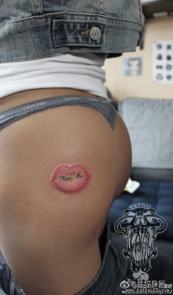 女生臀部潮流时尚的唇印与字母纹身图案_字母纹身图案大全_纹身图吧