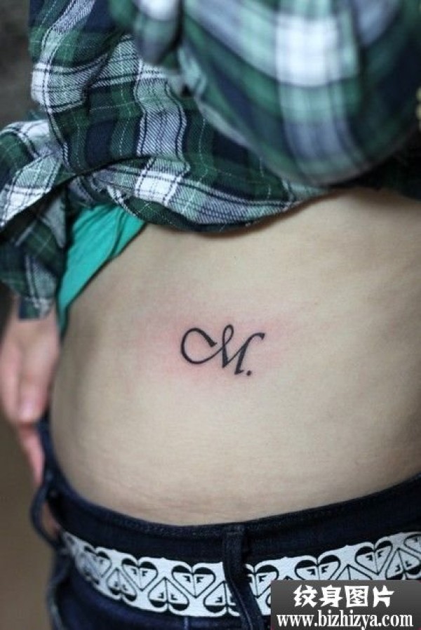 腰部字母M时尚刺青图案图片_字母纹身图案大全_纹身图吧