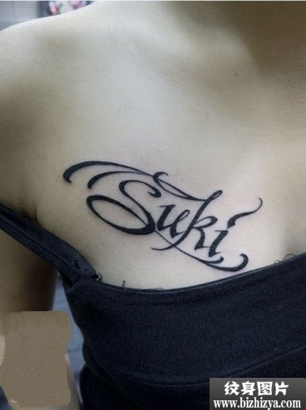 唯美胸前英文字母图案图片_字母纹身图案大全_纹身图吧