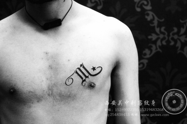 胸口字母设计纹身M西安关中刺客纹身_字母纹身图案大全_纹身图吧
