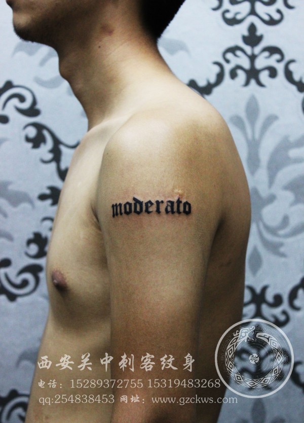 大臂肩部字母西安关中刺客纹身_字母纹身图案大全_纹身图吧