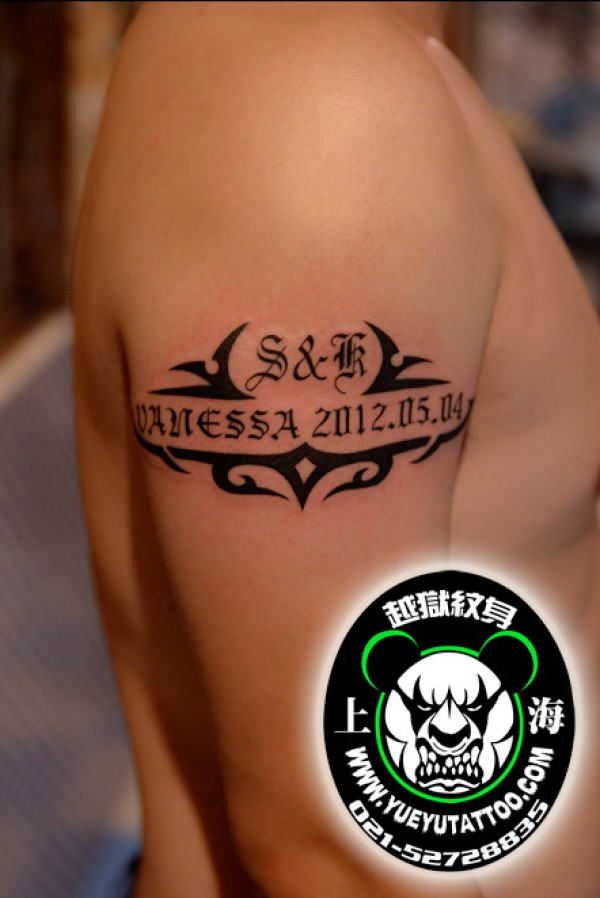 手臂字母臂环纹身图案上海越狱纹身店作品_字母纹身图案大全_纹身图吧