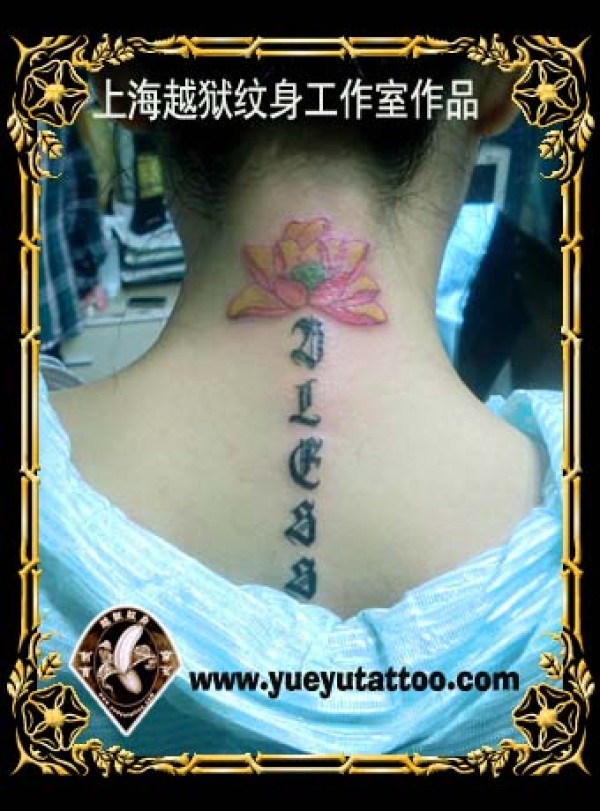 莲花配字母纹身|上海最好的纹身店上海越狱纹身_字母纹身图案大全_纹身图吧