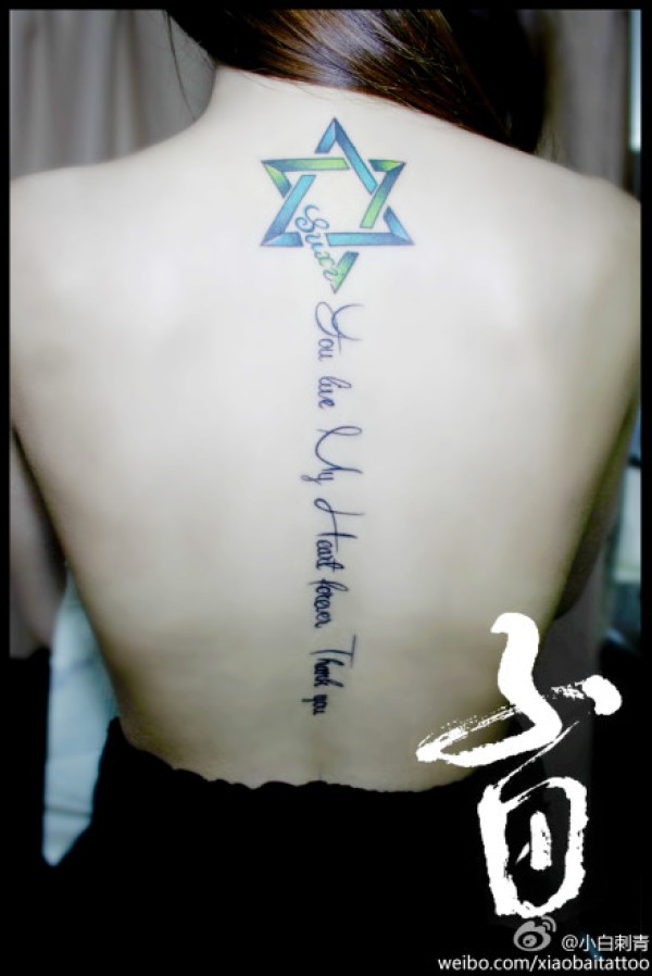 女生后背脊椎精美时尚的字母纹身图案_字母纹身图案大全_纹身图吧