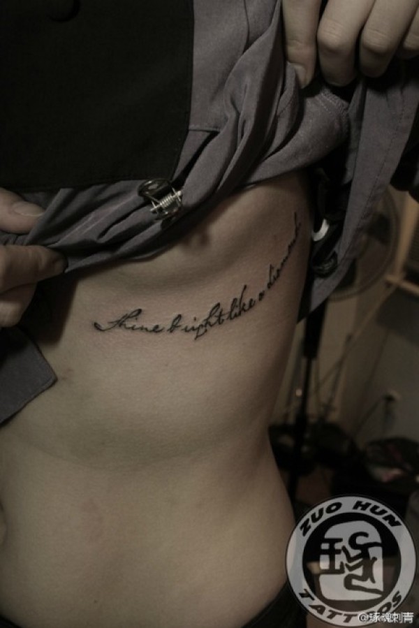 美女胸部潮流时尚的字母纹身图案_字母纹身图案大全_纹身图吧