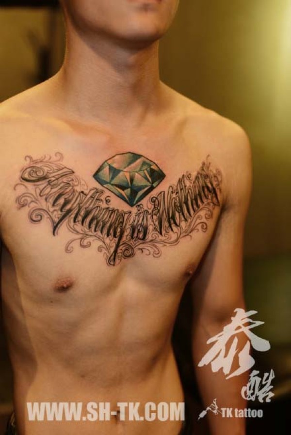 男生前胸潮流很帅的钻石与花体字母纹身图案_字母纹身图案大全_纹身图吧