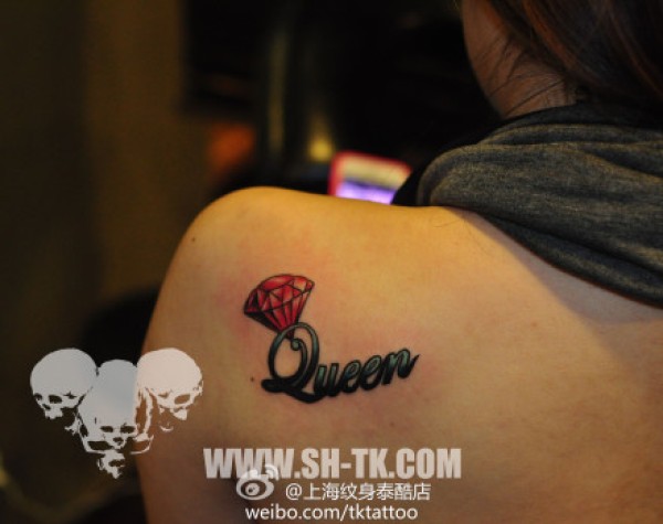 女生肩背小巧潮流的钻石与字母纹身图案_字母纹身图案大全_纹身图吧