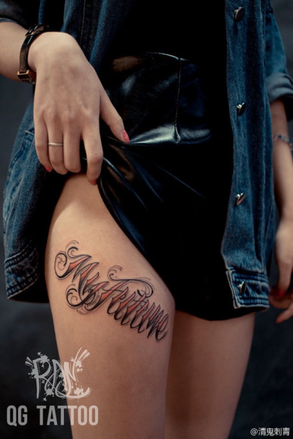 腿部唇印与字母纹身_字母纹身图案大全_纹身图吧