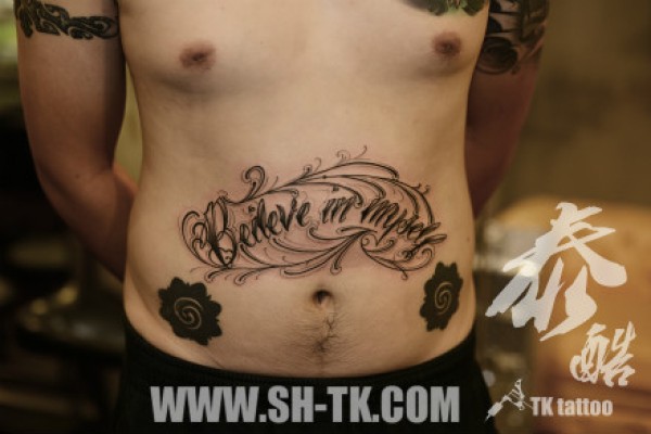 腹部时尚潮流的花体字母纹身图案_字母纹身图案大全_纹身图吧
