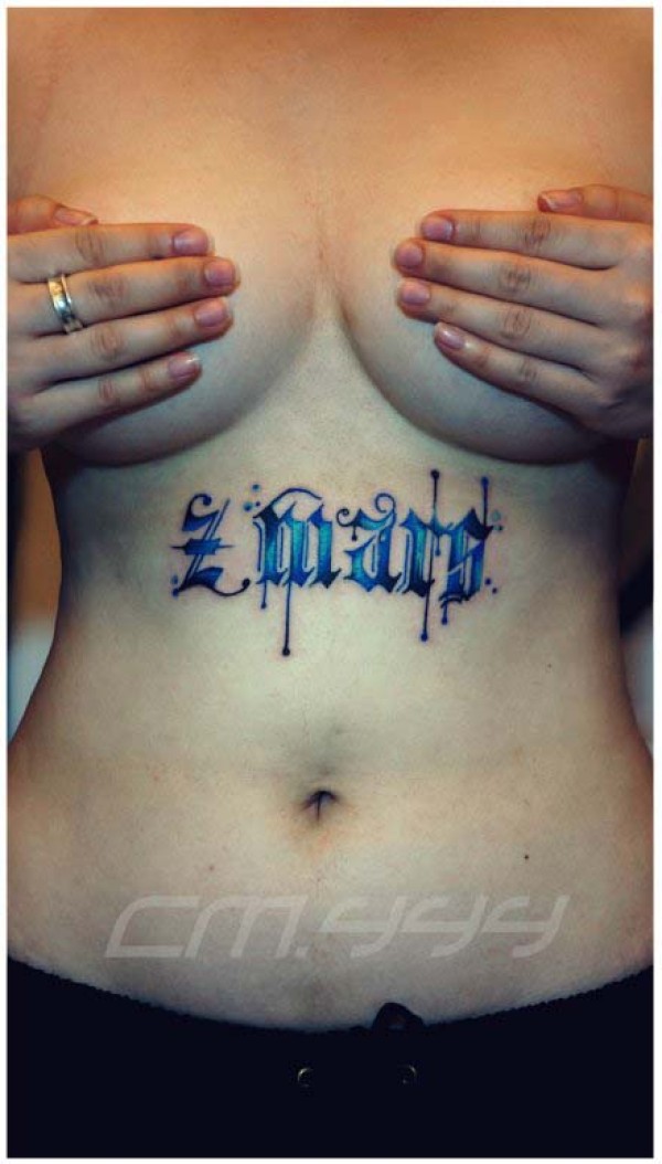 美女腹部潮流时尚的彩色哥特字母纹身图案_字母纹身图案大全_纹身图吧