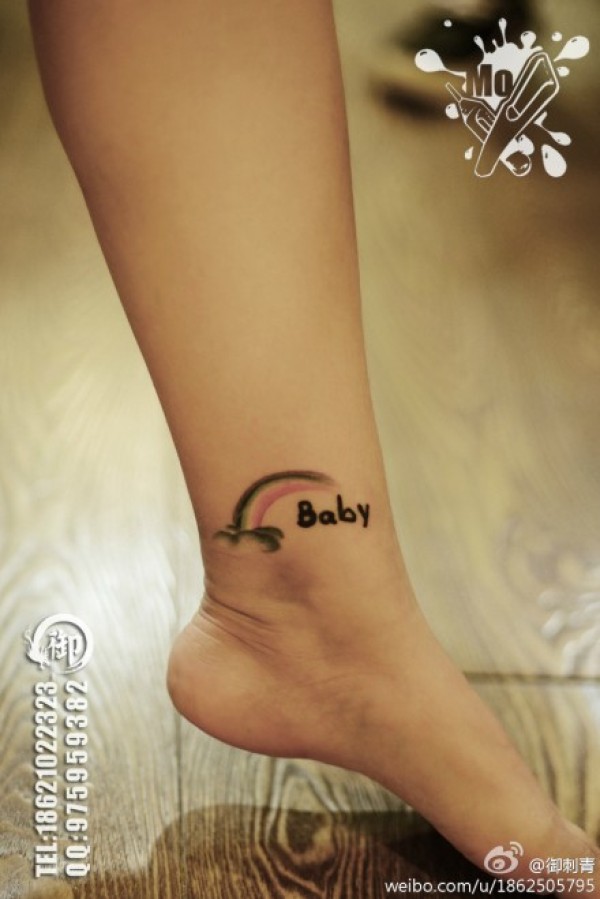 女生脚踝处小巧潮流的彩虹与字母纹身图案_字母纹身图案大全_纹身图吧