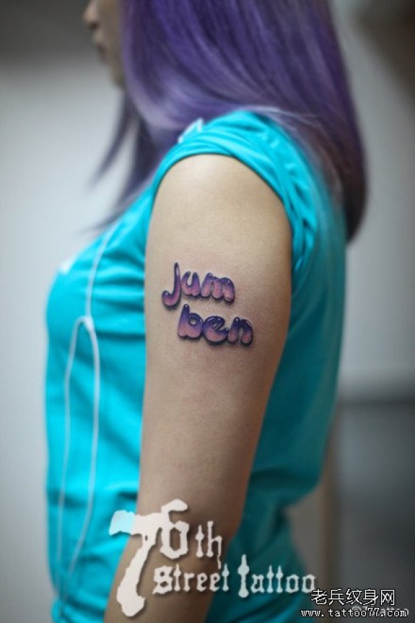 手臂精美时尚的水滴字母纹身图案_字母纹身图案大全_纹身图吧