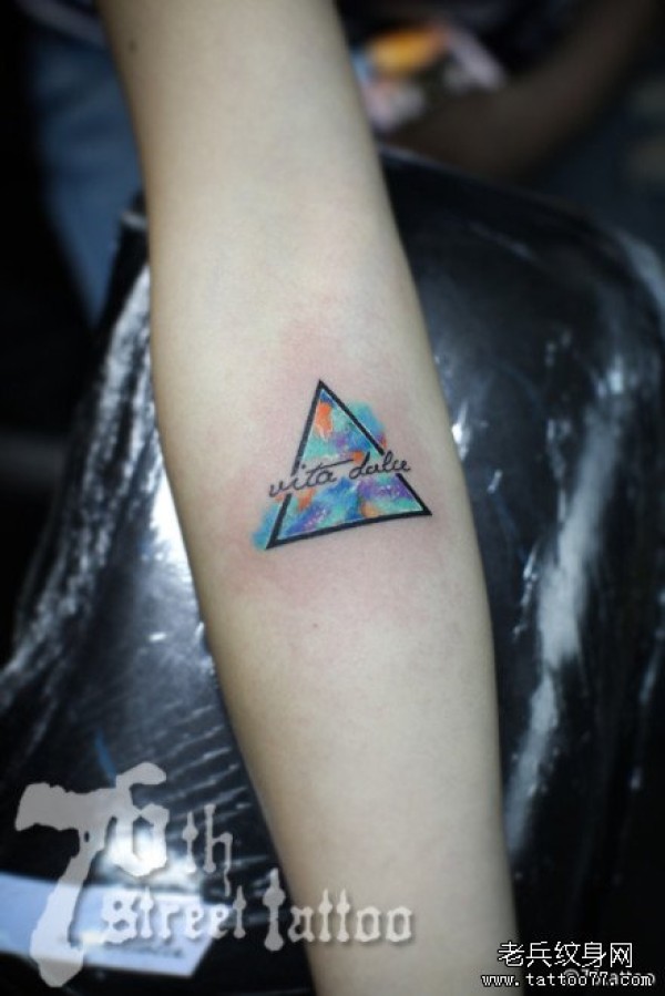 女生后背小巧精美的三角星空与字母纹身图案_字母纹身图案大全_纹身图吧