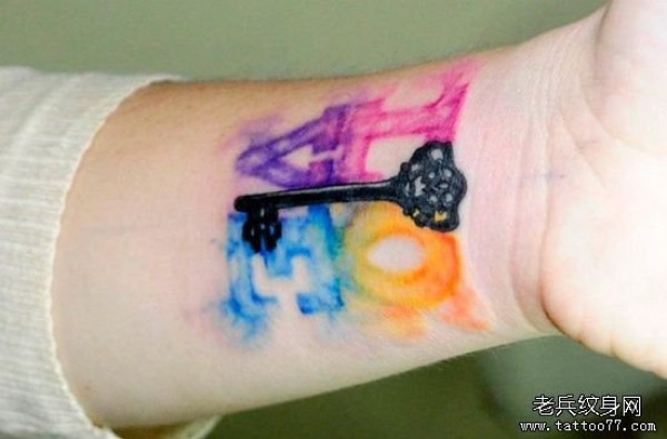 分享一款个性的字母钥匙纹身图案_字母纹身图案大全_纹身图吧