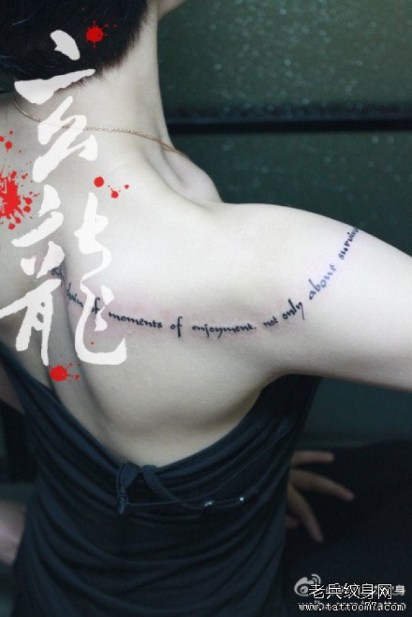 女生后肩背到手臂潮流清晰的字母纹身图案_字母纹身图案大全_纹身图吧