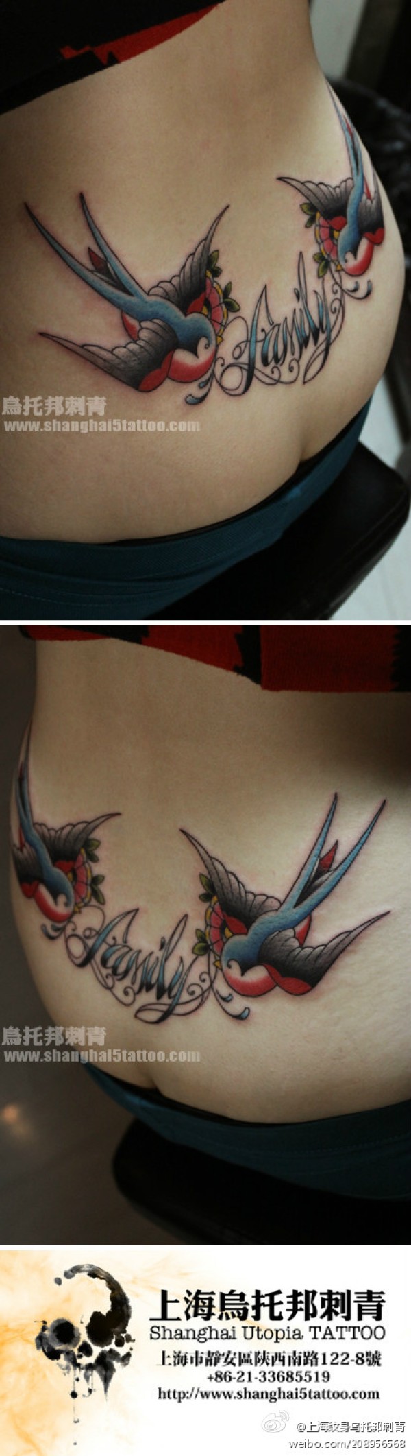 女生腰部潮流漂亮的小燕子与字母纹身图案_字母纹身图案大全_纹身图吧