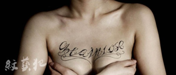 美女胸部潮流唯美的花体字母纹身图案_字母纹身图案大全_纹身图吧