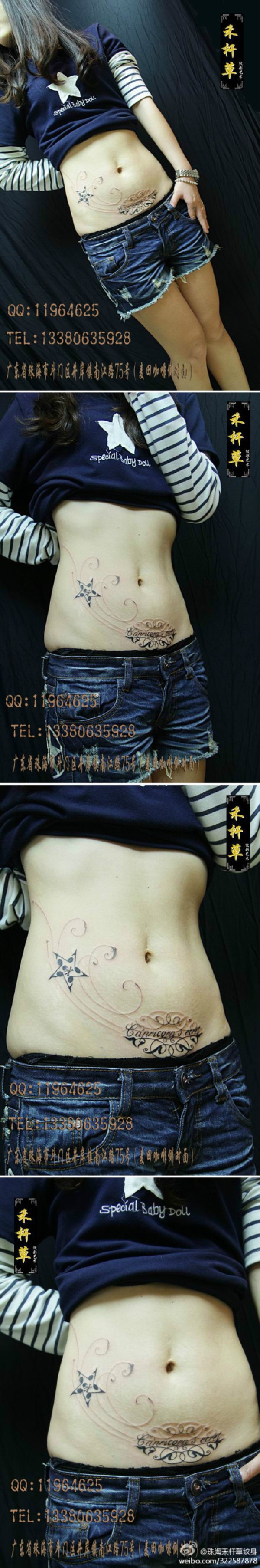 美女腹部时尚精美的花体字母纹身图案_字母纹身图案大全_纹身图吧