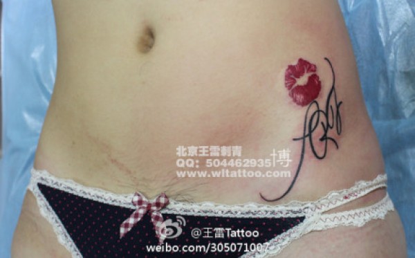 性感诱人的美女腹部唇印与字母纹身图案_字母纹身图案大全_纹身图吧