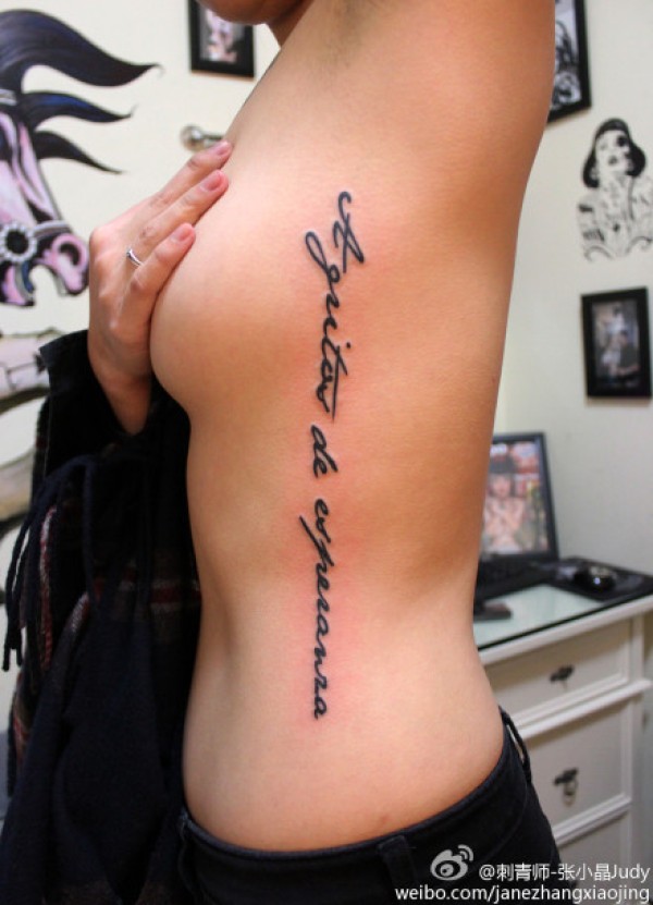美女侧腰时尚诱人的字母纹身图案_字母纹身图案大全_纹身图吧