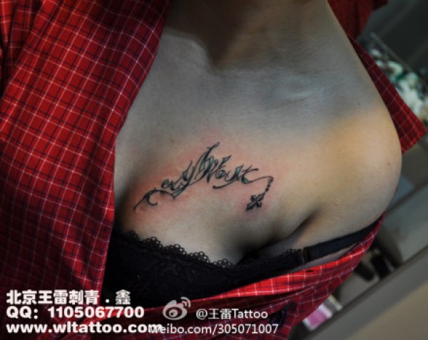 女生胸部时尚唯美的字母纹身图案_字母纹身图案大全_纹身图吧