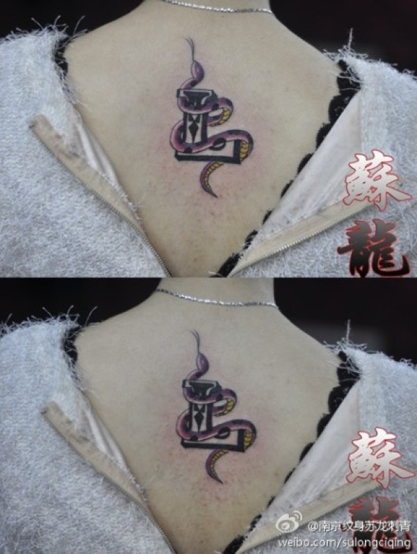 女生背部字母与小蛇纹身图案_字母纹身图案大全_纹身图吧