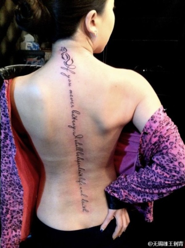 女人背部唯美经典的脊椎字母纹身图案_字母纹身图案大全_纹身图吧