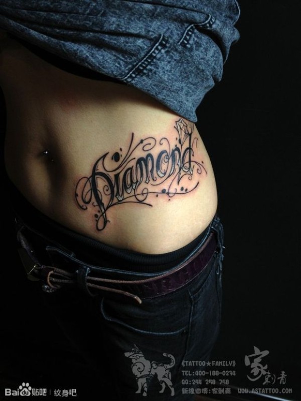 美女腹部时尚唯美的英文字母纹身图案_字母纹身图案大全_纹身图吧