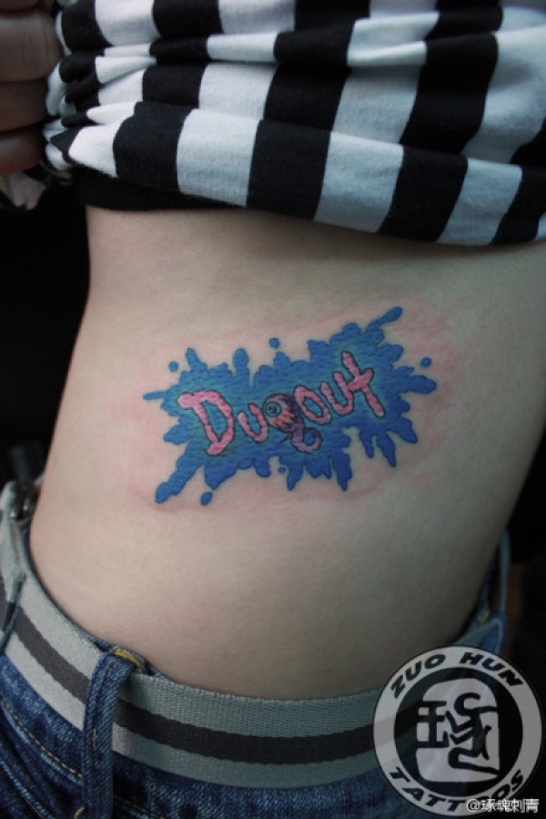 美女腰部漂亮精美的彩色字母纹身图案_字母纹身图案大全_纹身图吧