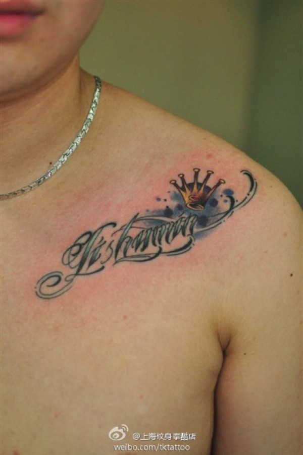 男人肩膀处精美时尚的字母与皇冠纹身图案_字母纹身图案大全_纹身图吧