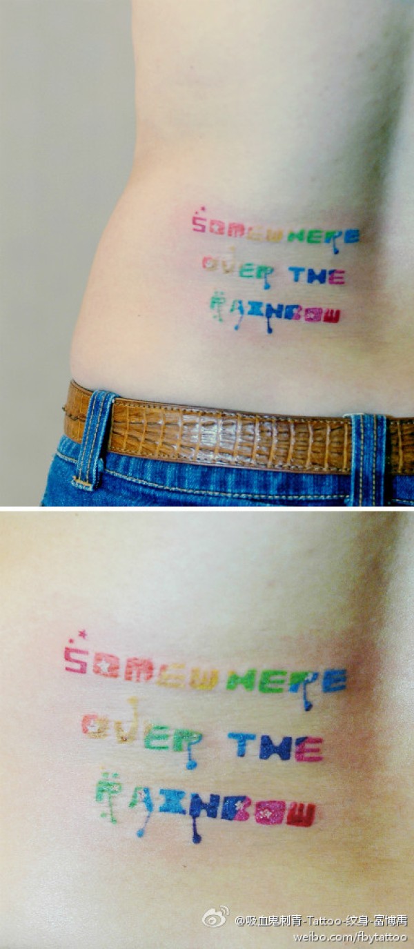 女生腰部漂亮的彩色字母纹身图案_字母纹身图案大全_纹身图吧
