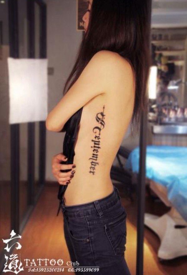 性感是女生侧腰哥特字母纹身图案_字母纹身图案大全_纹身图吧