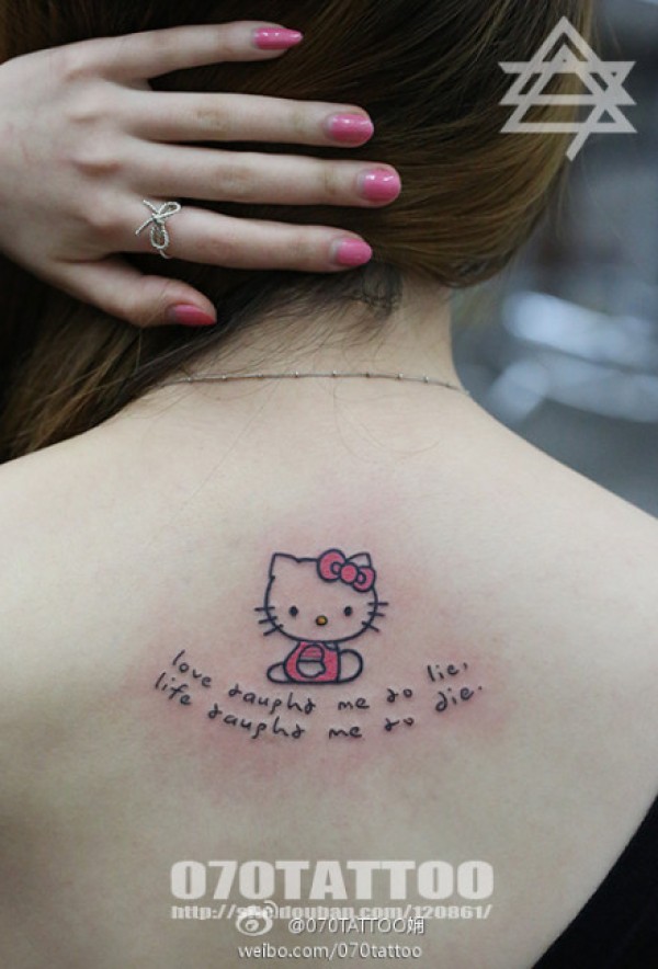 女生背部可爱的小猫咪与字母纹身图案_字母纹身图案大全_纹身图吧